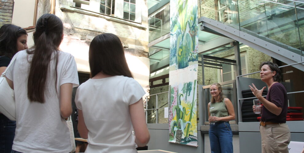 In Workshops mit Theatermalerinnen aus Rudolstadt haben Schülerinnen und Schüler der Realschule Ravensburg und des Welfen Gymnasiums selbst Theaterkulissen gemalt. Sie kopierten Ausschnitte aus dem