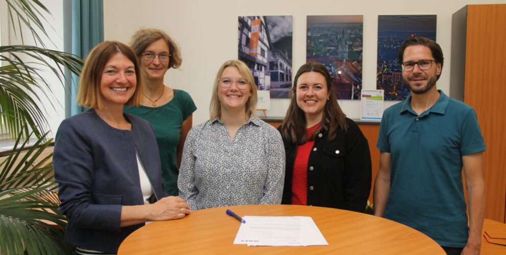 Nach der Vertragsunterzeichnung (von links): Frau Steinhilber (Schulleiterin), Frau Heindel (Team Berufsorientierung), Frau Brielmayer und Frau Schliffer (RAFI) sowie Herr Schlagmann (Team Berufsorientierung)   Am