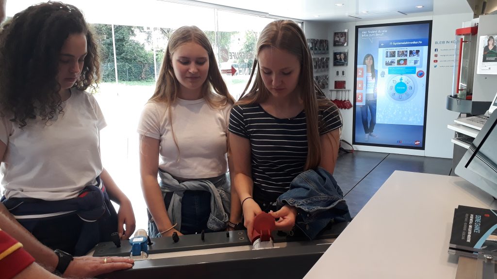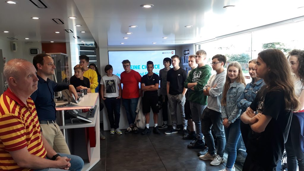 Am Ende des Schuljahres hatten die Schülerinnen und Schüler der Klasse 9 nochmal die Gelegenheit, sich intensiv mit dem Thema Berufswahl auseinander zu setzen: Beim Besuch des M+E-InfoTrucks konnten sie sich über die Ausbildungsmöglichkeiten und Berufsbilder im größten Industriezweig Deutschlands, der Metall- und Elektroindustrie informieren. Neben kurzen Vorträgen und Informationsfilmen zu Ausbildungsberufen konnten die Schülerinnen und Schüler an unterschiedlichen Arbeitsplätzen praktische Erfahrungen sammeln und die Faszination Technik live erleben.