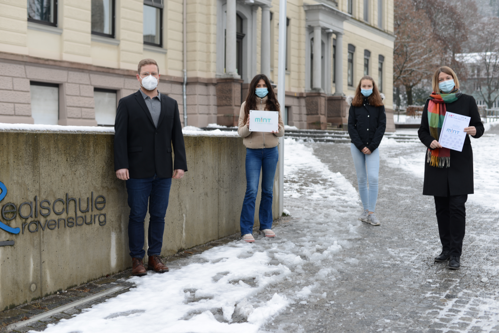 Im Zuge einer virtuellen Ehrungsfeier wurde auch die Realschule Ravensburg mit dem entsprechenden Signet geehrt. Die bundesweite Initiative „MINT Zukunft schaffen!“ setzt ihre Schwerpunkte in Bereichen der Mathematik, Informatik, Naturwissenschaften und Technik. Geehrt werden dabei Schulen aller Schularten, welche nach einem einheitlichen Auswahlverfahren nachweisen können, sich in diesen Bereichen besonders zu engagieren und zu qualifizieren. Die Ehrung wird von der Wirtschaft anerkannt und macht MINT-Schulen als solche nicht nur für Eltern und Öffentlichkeit, sondern auch für außerschulische Partner im Hinblick auf Unterstützungen und Kooperationen sichtbar und interessant.