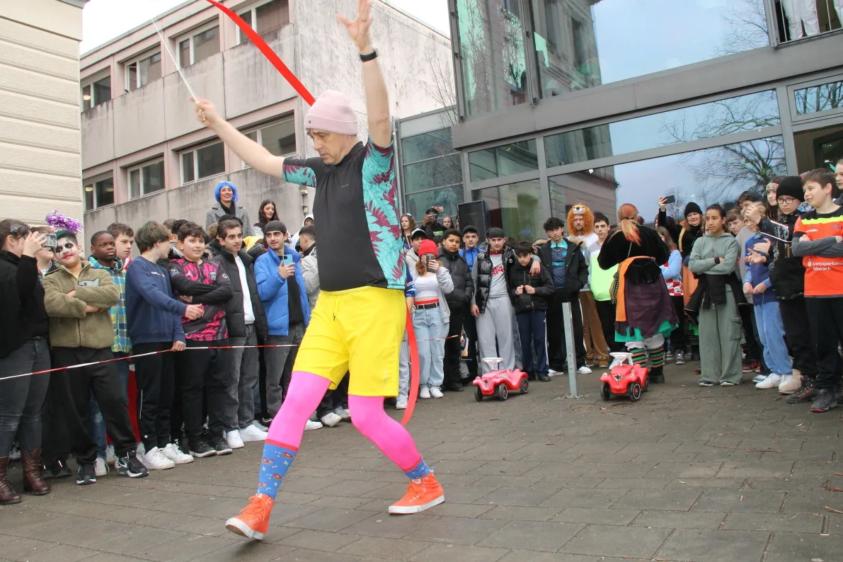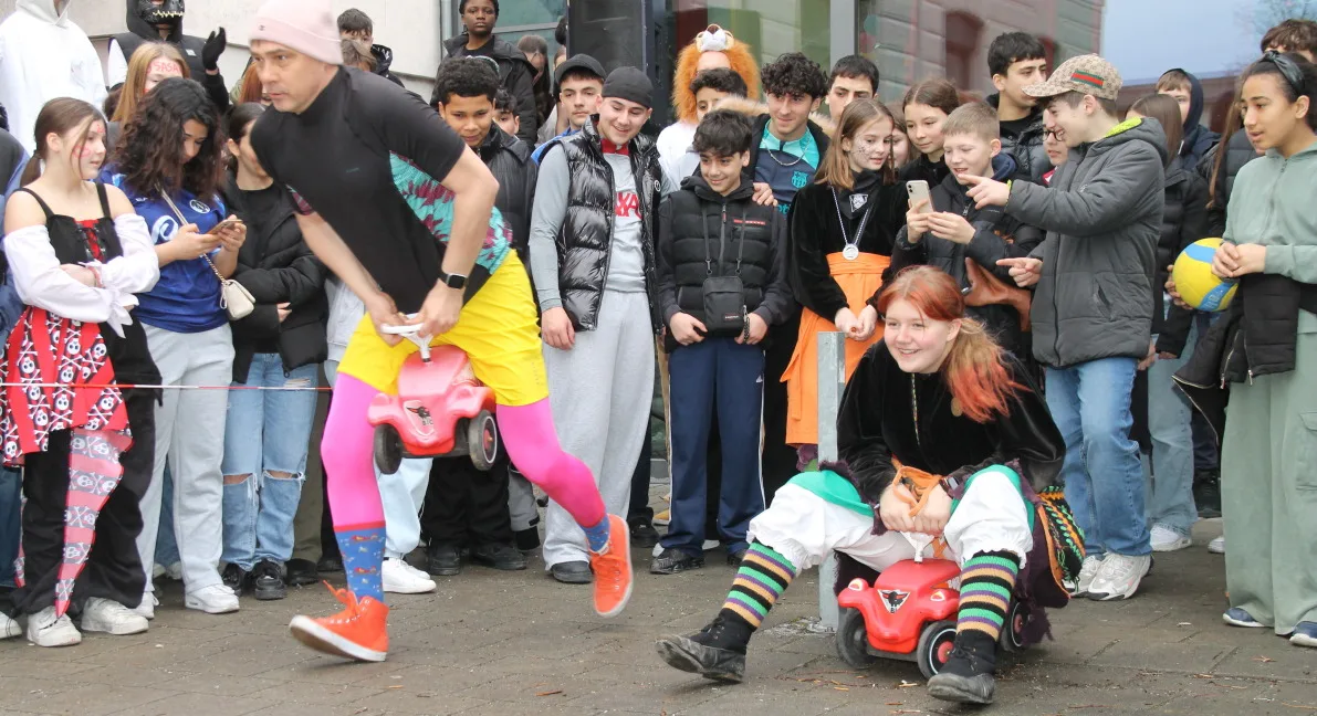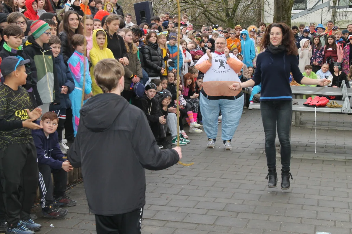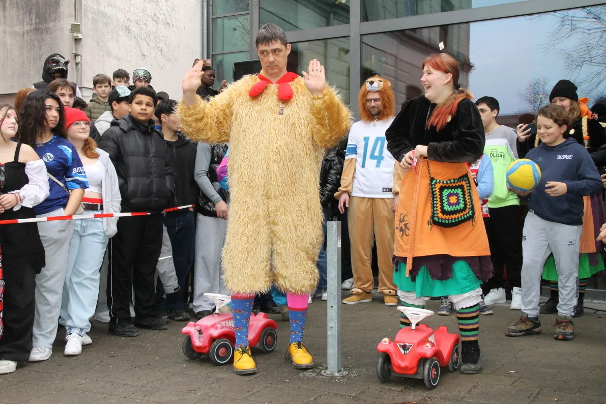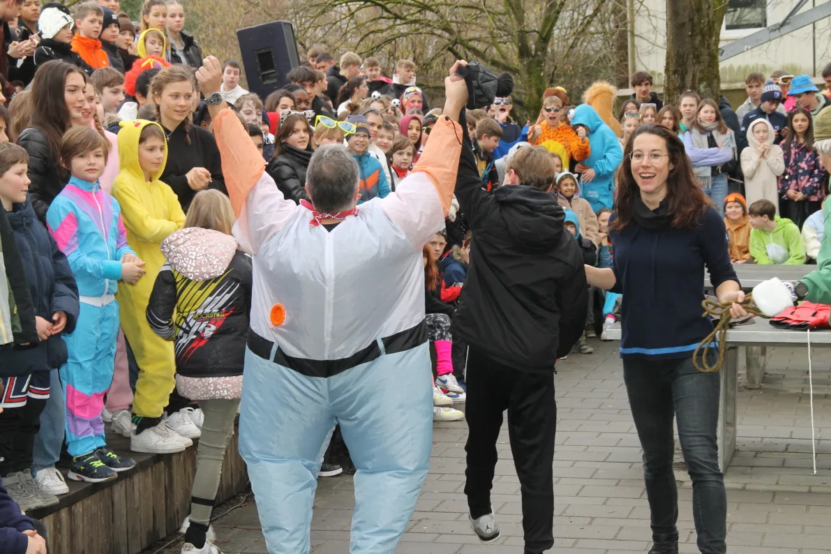Pünktlich zum Beginn der Fasnetsferien wurden die Schülerinnen und Schüler der Realschule Ravensburg durch eine Abordnung der „Schwarzen Veri“ befreit. Zunächst jedoch musste der Schulschlüssel im Spiel „Schlag‘ die Lehrer“ erobert werden. Dazu traten Schüler und Lehrer gegeneinander an. Die Teilnehmer mussten ihr Können im Jonglieren, Seilhüpfen, Eierlauf und dem schon legendären Bobby-Car Rennen unter Beweis stellen. Nachdem diese Aufgaben erfolgreich gemeistert waren, gab es jedoch kein Halten mehr und die Schülersprecher konnten den Schulschlüssel in Empfang nehmen. Einen tollen Abschluss fand die Befreiung mit dem Auftritt der Lumpenkapelle Taldorf. Wir wünschen allen Schülerinnen und Schülern schöne Ferien!
