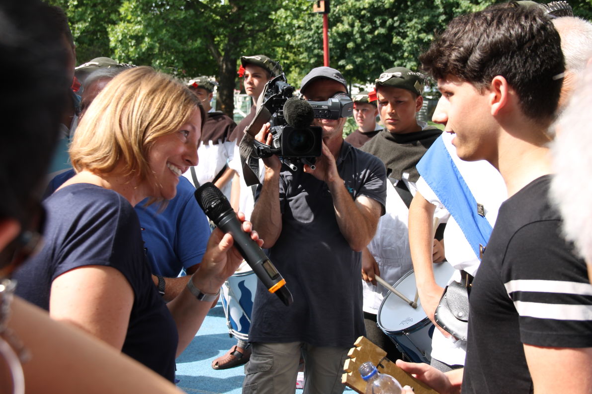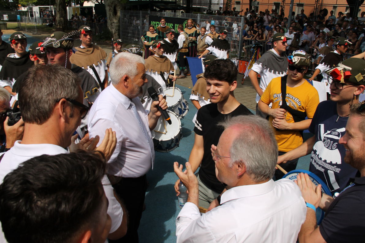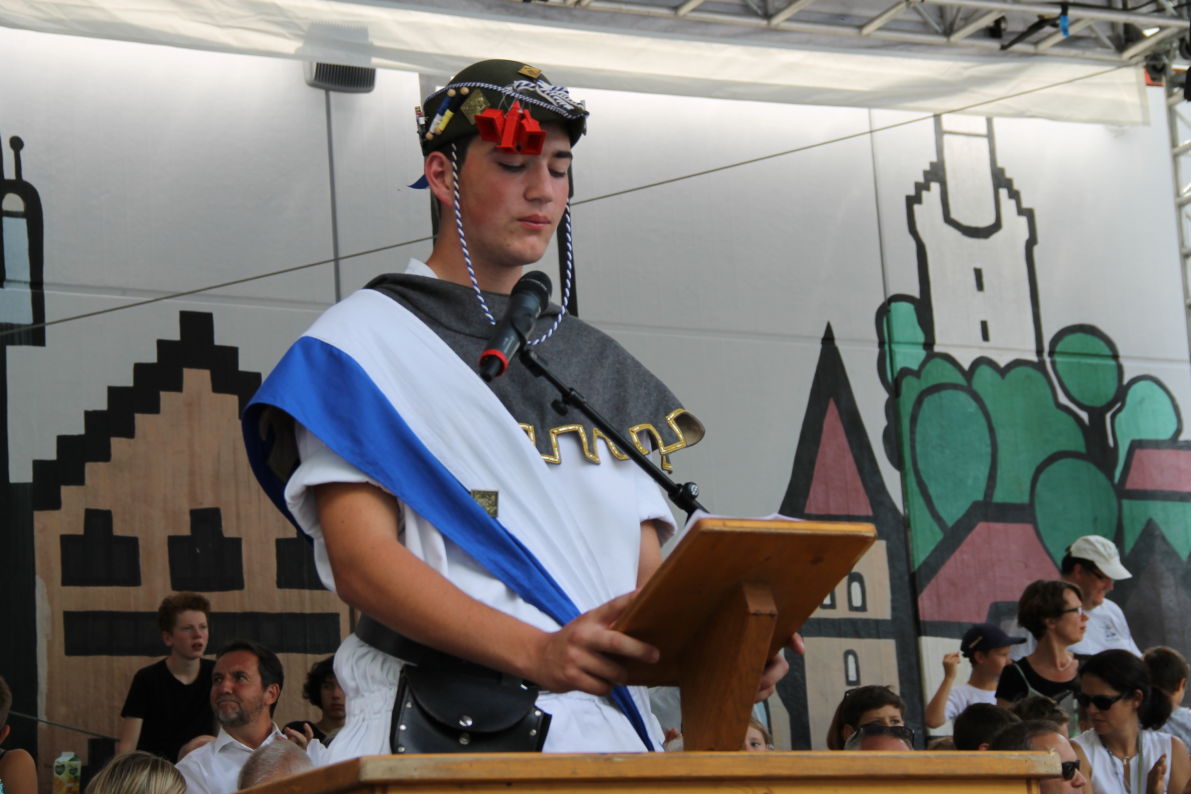 - Andy Mekic nimmt die Glückwünsche der Stadt, der Rutenfestkommission und der Schulleitung entgegen