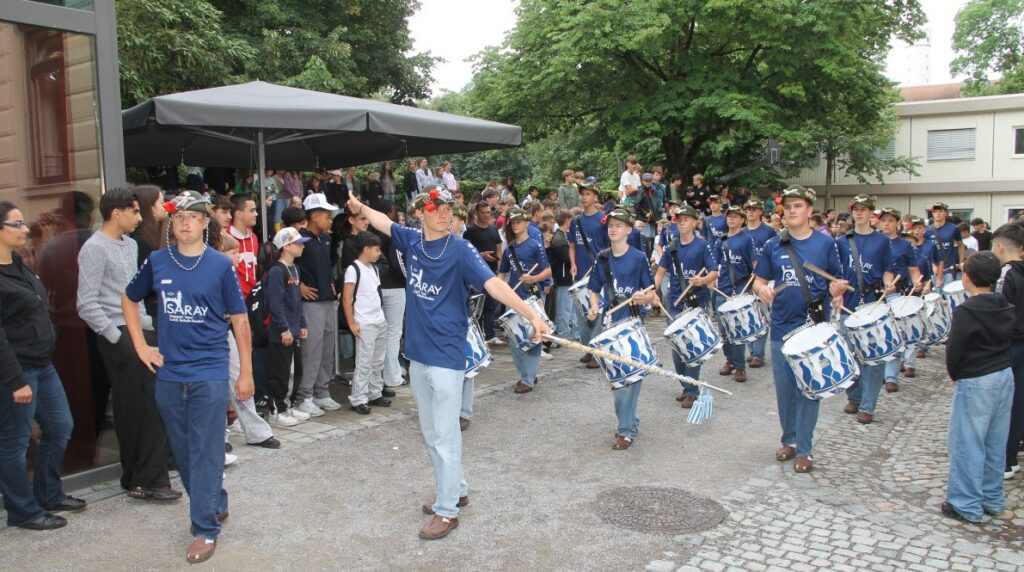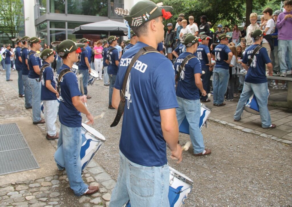 Am Donnerstag, den 24. Juli, kurz vor Beginn des Rutenfestes, gaben die Schützentrommler eine Kostprobe ihres Könnens auf dem Schulhof der Realschule Ravensburg. Umringt von Schülerinnen und Schülern hatten sie die ungeteilte Aufmerksamkeit ihres Publikums. Hier einige Bilder des Auftritts: