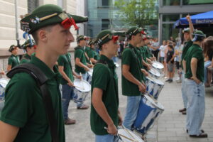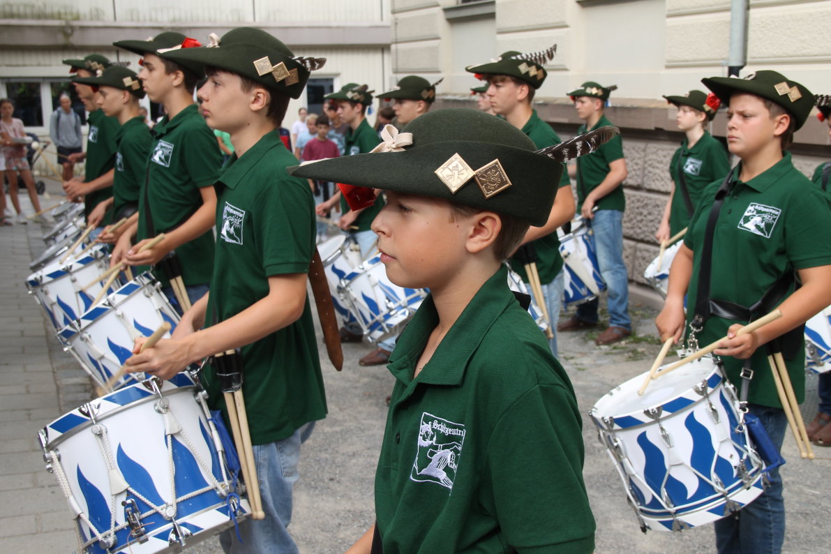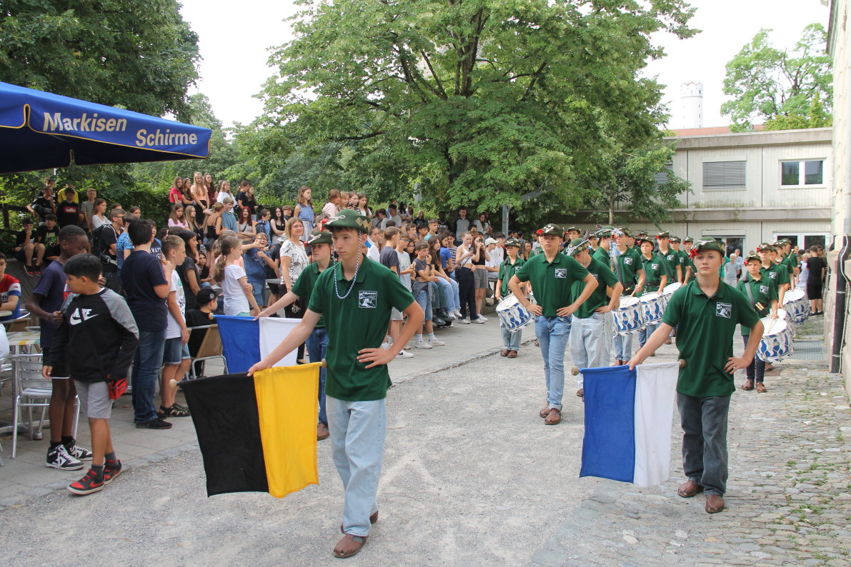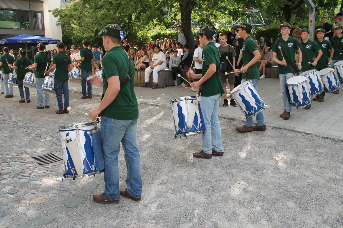 Am Donnerstag vor Beginn des Rutenfestes fand das traditionelle Antrommeln der Schützentrommler an der Realschule Ravensburg statt. In der großen Pause zeigten die Trommler im Schulhof vor Schülern, Lehrern und Eltern ihr Können.
