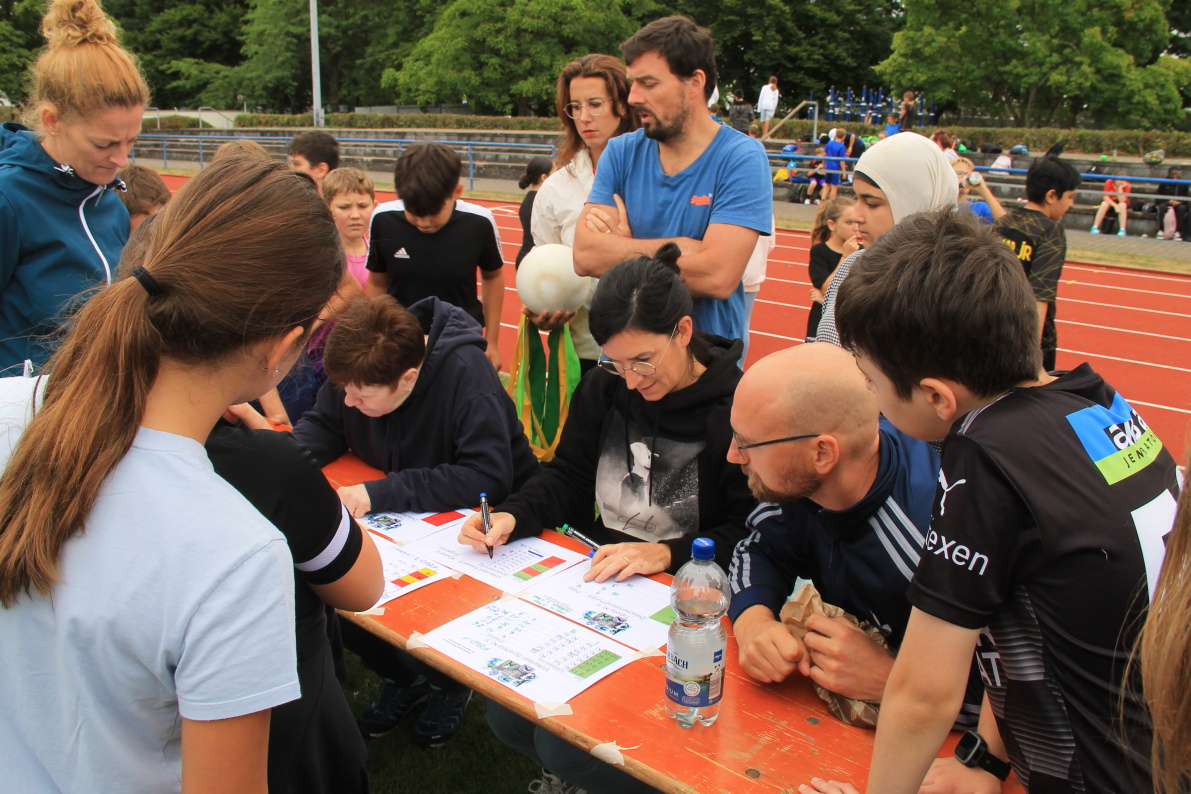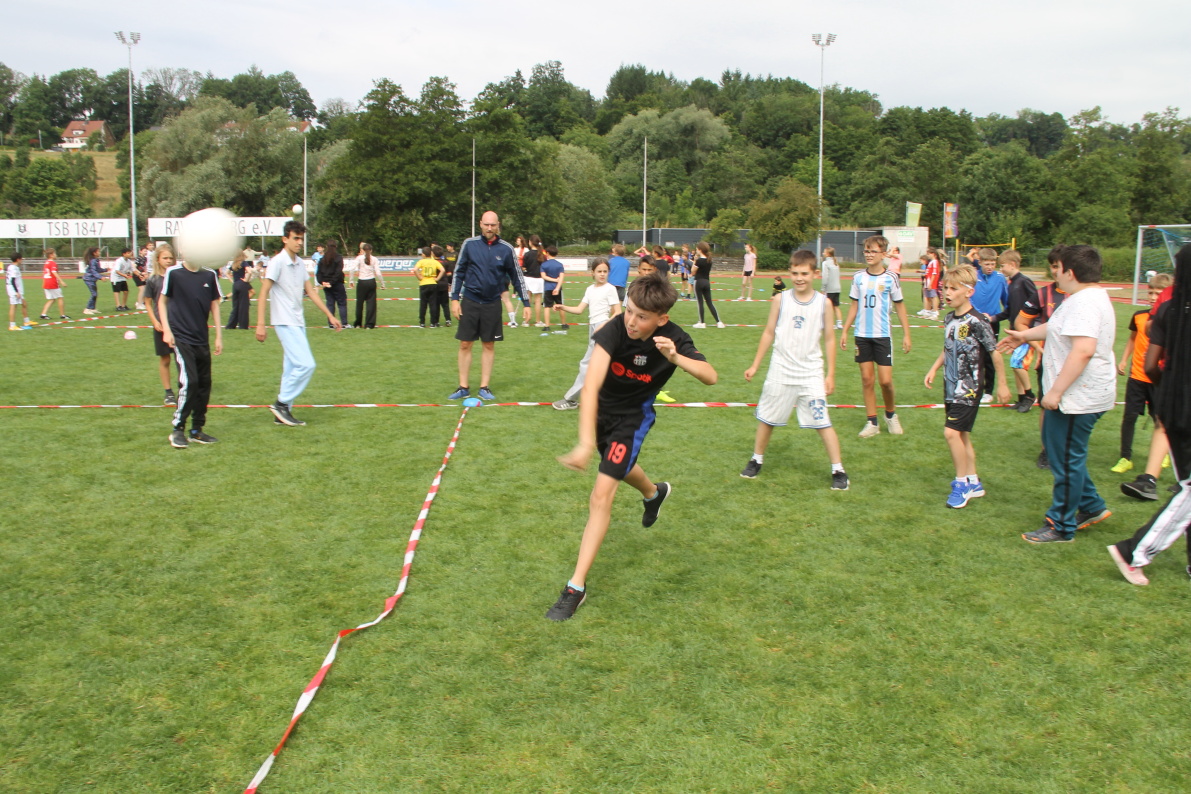 Am Mittwoch, den 16. Juli war es wieder so weit: Sporttag an der Realschule Ravensburg! Bei perfektem Wetter (bedeckt, aber trocken) trafen sich Schülerinnen und Schüler sowie die Lehrerinnen und Lehrer auf dem TSB Gelände. Drei Wettbewerbe gab es je nach Klassenstufe: ein Völkerballturnier für die Schüler der Klassen 5+6, sowie eine Spaß-Olympiade oder ein Fußball-Turnier für die Klassen 7-9. Insgesamt ein toller Vormittag für alle Beteiligten. 🙂 Hier einige Bilder: