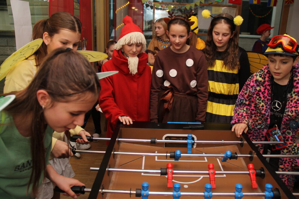 Einen rauschenden Unterstufenball feierten die Schülerinnen und Schüler der fünften bis siebten Klassen am Mittwoch, den 26. Februar. Organisiert durch die SMV unter Leitung von Frau Balle und Herrn Hartmann verbrachten die Schülerinnen und Schüler einen tollen Nachmittag. Im Schülercafé war gab es Waffeln und Getränke für alle, Schulsozialarbeiterin Frau Heindel war als DJ im Einsatz. Es gab verschiedene Aktionen, darunter eine Kostümprämierung und Luftballontreten. Es wurde viel getanzt und gelacht. 🙂 Hier einige Bilder dieses besonderen Nachmittags: